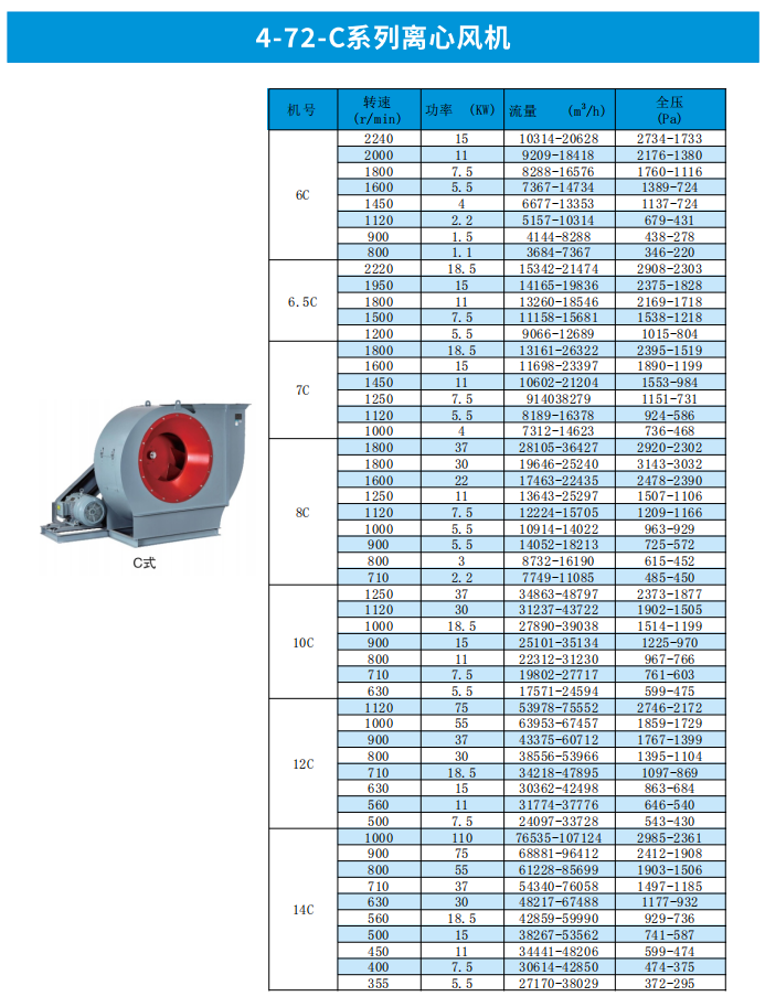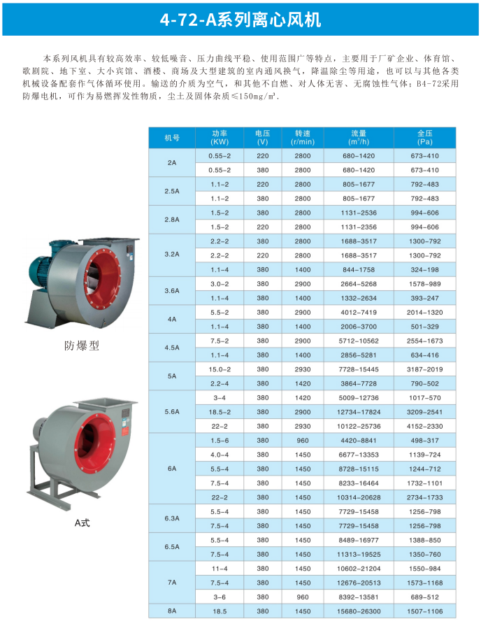 4-72 系列后傾工業離心風機